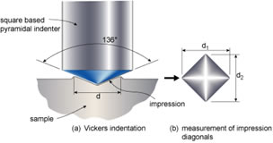 Vickers Sertlik Testi, kare tabanlı elmas bir piramidin kullanıldığı testtir. Sertliği ölçülecek malzeme parçasının yüzeyine, 136 derece tepe açılı elmas, kare piramit şeklindeki bir ucun belirli bir yük altında, belirli bir süre daldırılması ve yük kaldırıldıktan sonra meydana gelen iz alanının, köşegenlerin ölçülmesi vasıtası ile belirlenmesinden ibarettir. Vickers sertlik değeri yükün, izin yüzey alanına oranıdır.